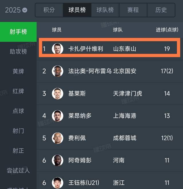 中超现役第一外援:卡扎伊什维利6项数据第一,提前锁定最佳!